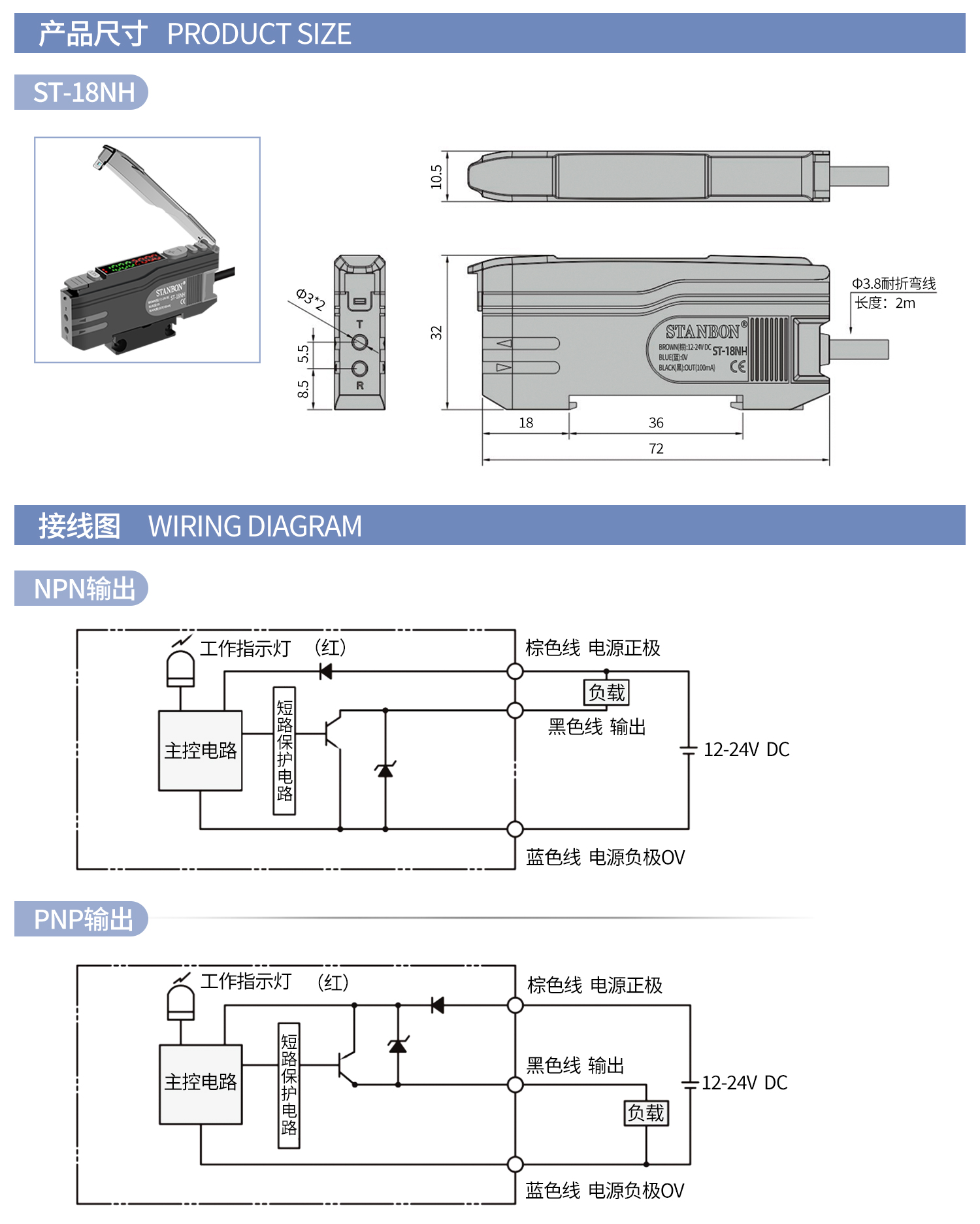 ST-18NH支持对射、漫反射、矩阵区域等多种检测模式,可搭配M3/M4/M6光纤探头,满足不同工位需求。例如,在冲床防护中,可与安全光栅联动,实时监测人员误入风险;在物流分拣中,可精准识别货物位置,提升分拣效率。下面我们详细了解这款产品: