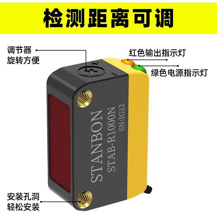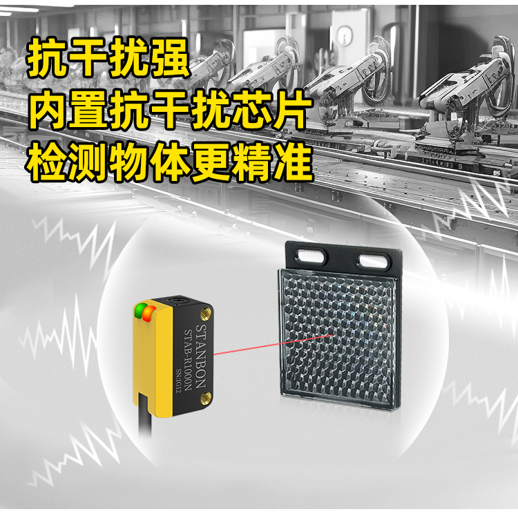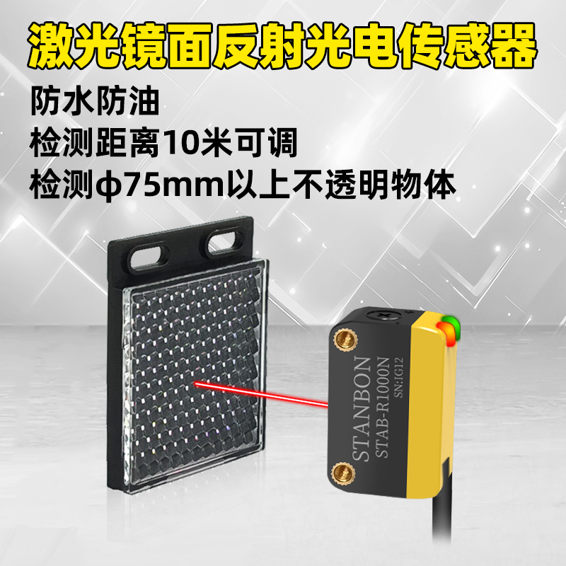 在工业自动化领域,检测精度与稳定性始终是生产线高效运转的核心需求。深圳市施特安邦科技有限公司凭借十余年光电传感器研发经验,正式推出STAB-R1000N激光镜面反射光电传感器——一款专为长距离、高抗干扰场景设计的工业级检测设备,以10米超远检测距离、φ75mm以上精准检测能力,重新定义工业检测标准。下面一起详细了解这款激光镜面反射传感器: