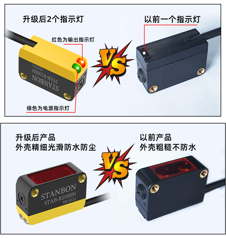 为降低用户部署门槛,STAB-R1000N提供NPN/PNP双输出模式与2米标准电缆,兼容主流PLC与工业控制器。通过旋转式拨码开关,用户可快速设置常开/常闭触点、检测距离微调,无需复杂编程即可适配不同工况。